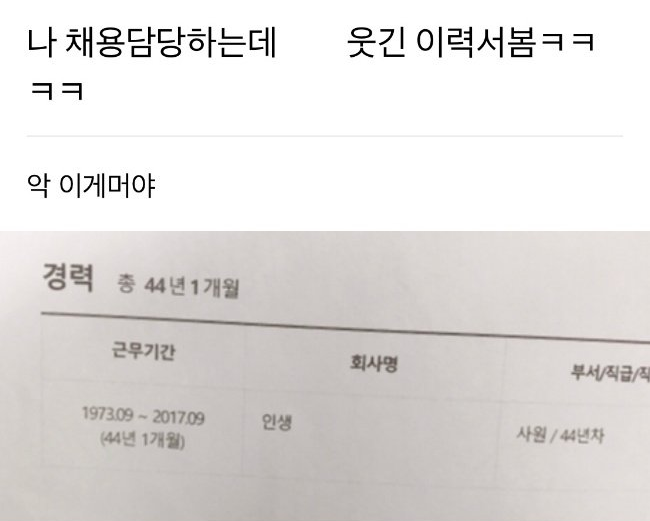프로필 사진 나 채용담당하는데 웃긴 이력서 봄 Level 50초신성의꿈+5 조회수 : 16 |  26.02.10
