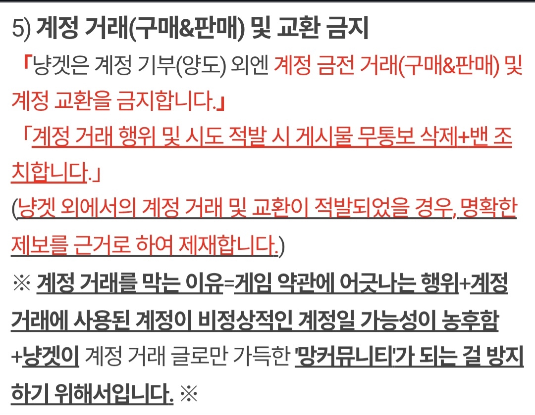 게시판수칙 3-5, 계정 거래 및 교환 금지 위반. 밴입니다.